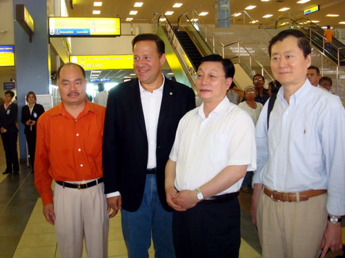 中新网2月21日电 据巴西《南美侨报》报道,“文化中国 四海同春”2010年春节南美慰侨访问演出团,在圆满完成了巴拿马的访演任务后,于当地时间20日中午离开巴拿马城,启程飞往秘鲁首都利马。在巴拿马的托库门国际机场,中国海外交流协会副会长马儒沛与巴拿马第一副总统兼外长萨穆埃尔·莱维斯·纳瓦罗见了面,并且双方进行了友好的交谈。