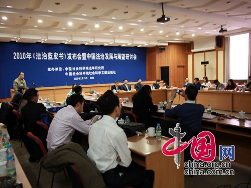 中国社会科学院于2月25日上午9:00在中国社科院第一学术报告厅举行“2010年《法治蓝皮书》发布会”,并于会上发布《中国法治发展报告No.8(2010)》。