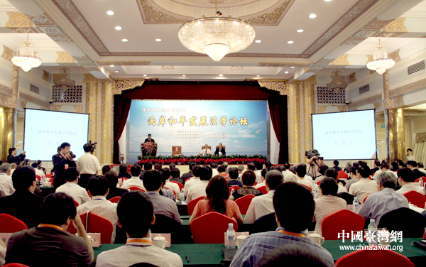 中国台湾网8月22日北京消息 上午九点,由海峡两岸法学研究会主办的两岸和平发展法学论坛在京举行。来自海峡两岸法学界、法律界学者193名代表与会,共同回顾两岸法治发展历程,展望两岸法治建设未来。
