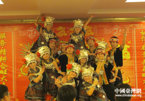 旺旺贵阳分公司员工表演的舞蹈《苗族敬酒歌》。(贵阳市台办 段小芬 摄)