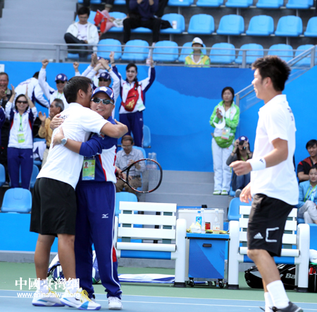 中国台湾网11月16日广州消息 网球男子团体决出冠军,头号种子中华台北力敌3号种子乌兹别克斯坦,在决定胜负的第三场双打中,以2:0完胜。这也是中华台北队在亚运会网球男子团体赛上第一次打进决赛并赢得金牌。