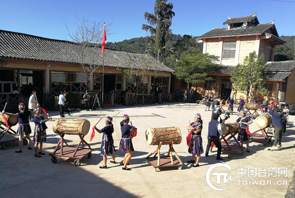 拍摄墨江哈尼族牛皮大鼓舞。(普洱市委台办供图)