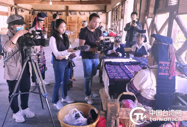 采访拍摄哈尼族刺绣。(普洱市委台办供图)