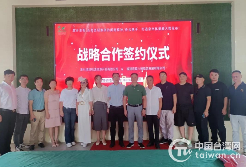 中国台湾网8月27日讯 8月25日,泉州清境桃源旅游开发有限公司与福建宏硕八通旅游发展有限公司战略合作签约仪式在南安清境桃源景区举行。