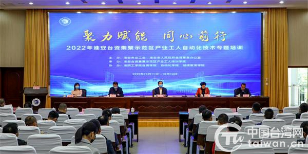 中国台湾网10月13日讯 近日,以“聚力赋能 同心前行”为主题的2022年淮安台资集聚示范区产业工人自动化技术专题培训班开班仪式在淮阴工学院举行。来自10家台企的学员们将在此参加为期4天的培训,完成相关的理论学习和实操演练。