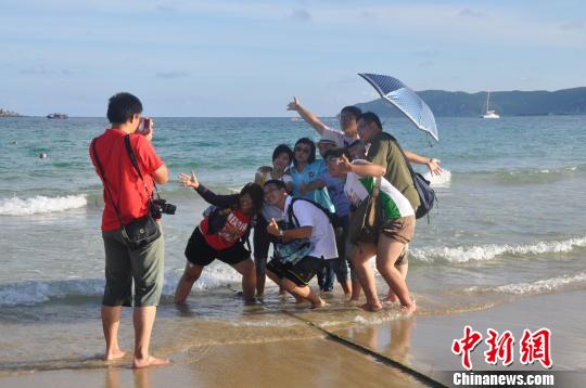台北海南同乡会的青年学生在亚龙湾合影。 周凤婷 摄
