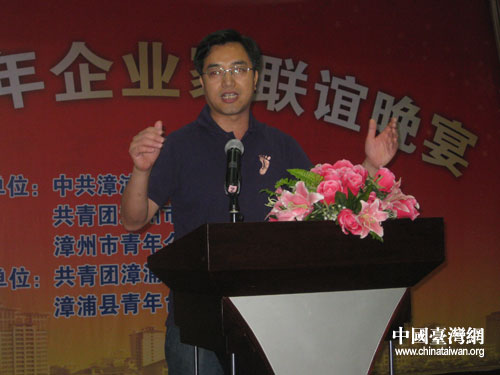漳浦县委常委、宣传部长、教育工委书记周小华向访问团介绍浦台青年交流合作情况以及台资企业在漳浦的发展壮大历程。(漳浦县台办 陈文亮 摄)