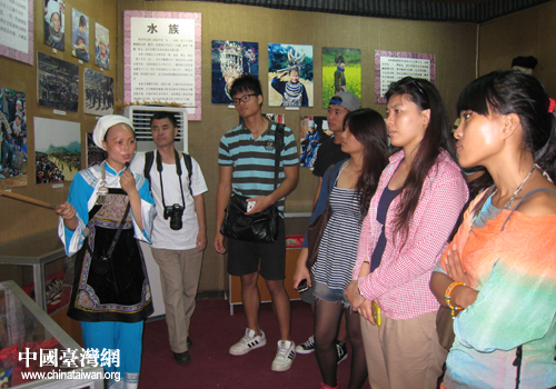 中国台湾网7月19日三都消息 日前,2012年台湾青年千人夏令营贵州分营踏上三都水族自治县。走进水族民族博物馆领略神秘的水族文化。三都是全国唯一的水族自治县,水族人口占全县人口的80%,水族有自己的文字和语言。