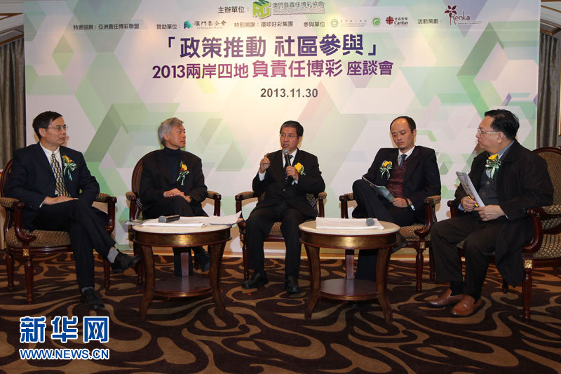 当日,由澳门负责人博彩协会主办的2013两岸四地负责任博彩座谈会在澳门举行,来自内地及港澳台的专家学者就澳门博彩业及澳门经济多元化发展进行了探讨。 新华社记者 程光明 摄