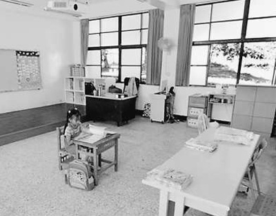 2014年9月,台湾花莲卓枫小学唯一的小一新生古蕊篮在教室中。