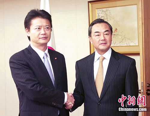 11月14日,中共中央台办、国务院台办主任王毅在东京会见了日本外务大臣玄叶光一郎。中新社发 孙冉 摄