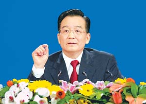 3月14日,国务院总理温家宝在北京人民大会堂与中外记者见面,并回答记者提问。 本报记者 李舸摄