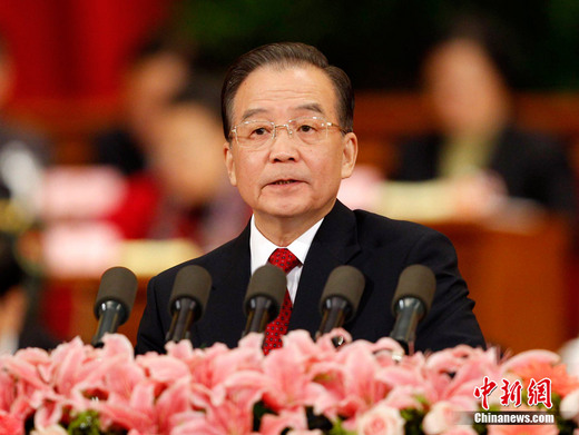 3月5日上午9时,十一届全国人大四次会议在人民大会堂开幕。国务院总理温家宝代表大会作政府工作报告。中新社记者 盛佳鹏 摄