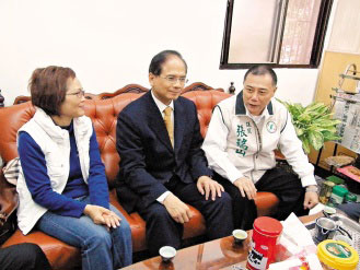 前“行政院长”游锡堃(中)上午拜访民进党籍台北县议员,试探新北市长党内选情。图片来源:台湾《联合晚报》