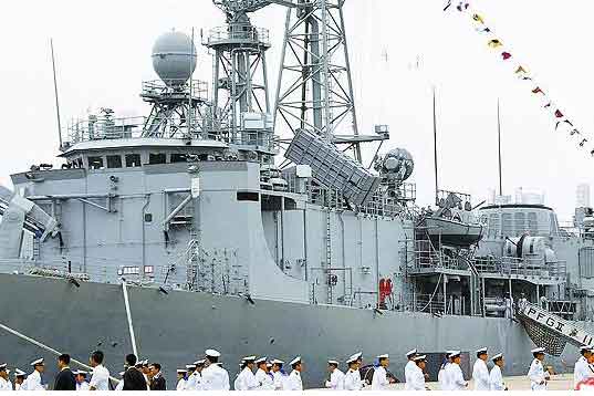 台海军主力战舰不断出现军纪事件,图为爆士兵砍死平民事件的郑和军舰。图片来源:台湾《苹果日报》