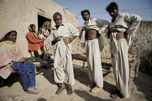 据新加坡《联合早报》23日援引外电报道,22岁的里伊兹(右)、他的25岁哥哥伊贾兹(右二)、65岁的父亲卡尔姆(右三)和伊贾兹的20岁妻子法尔扎娜(左)几年内都卖掉了他们的肾脏。