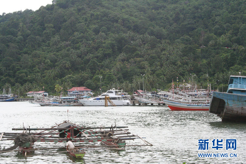 10月28日,一些渔船和快艇停泊在印尼西苏门答腊省巴东市附近的崩古斯渔港。海啸发生后,明打威群岛附近海域海浪仍然很高,只有大型舰船可以出航,给救援工作带来了很大困难。当日,一艘搭载了救援队员、记者等近300人的轮船将奔赴灾区锡卡卡普岛,船上还装载了大量救援物资。新华社记者李晓渝摄