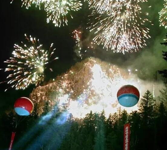 2003年2月16日,朝鲜为庆祝金正日生日,在其出生地白头山附近燃放烟花。