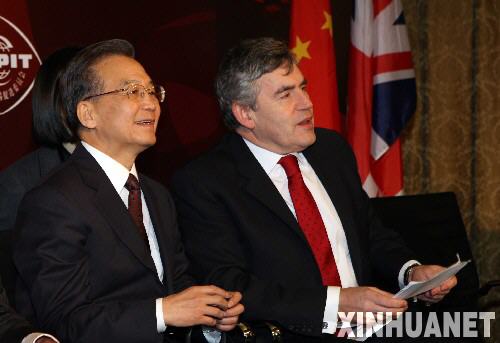英国政府1月发表了对华战略框架文件,表示要促进中国对英投资、加强中国在世界上的作用。两国领导人在会谈时同意实现双边贸易额翻一番。布朗说:“在消除贫困、解决冲突及气候变暖对策上,中国的合作不可缺少。”他对中国大加赞赏。