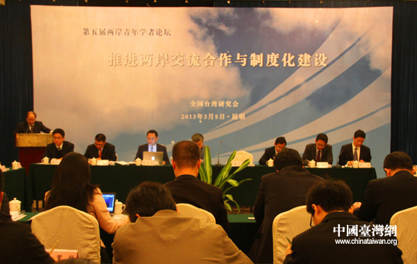 中国台湾网3月5日昆明消息 由全国台湾研究会主办的“第五届两岸青年学者论坛”5日在云南昆明开幕。此次研讨会主题为“推进两岸交流合作与制度化建设”,来自两岸的40余位青年学者,围绕两岸政治、经济、文化等领域的制度化建设交换意见并展开热烈讨论。