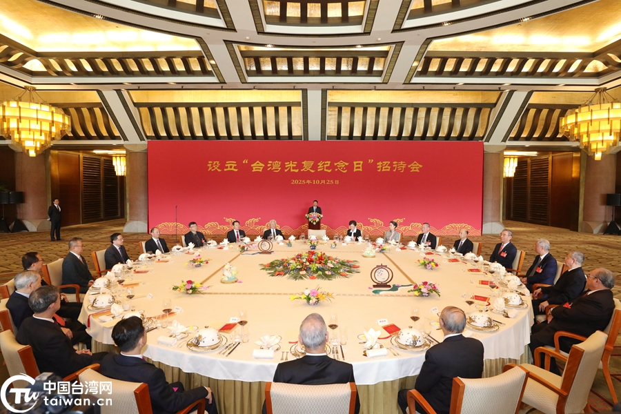 中国台湾网北京10月25日讯 25日中午,中共中央台办、国务院台办在钓鱼台国宾馆举办设立台湾光复纪念日招待会,参加25日上午纪念台湾光复80周年大会的台湾各界嘉宾、大陆有关方面代表人士出席。