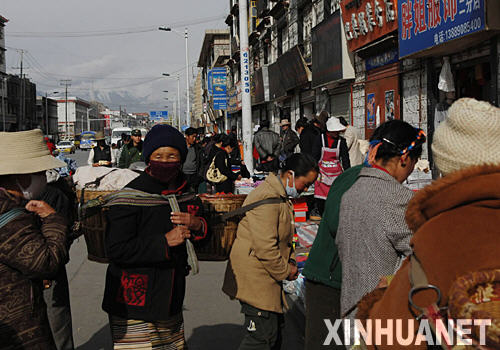4月6日,市民在拉萨市北京东路购买日用品。截至目前,在拉萨“3·14”事件中受损的900多商户,已有500多户恢复营业。西藏自治区政府将采取在一定时期内为受损商户提供无息贷款或政府贴息贷款等优惠政策,让受损商户尽快恢复生产生活。 新华社记者 索朗罗布 摄