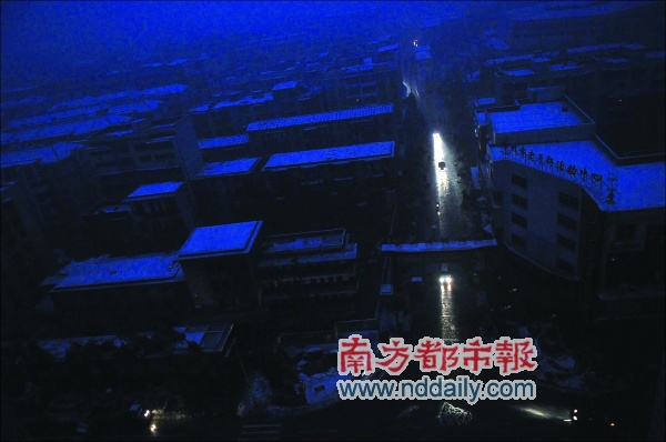 入夜以后,湖南郴州市区一片漆黑,这个城市已经连续停电停水6天。 本报记者张志韬摄