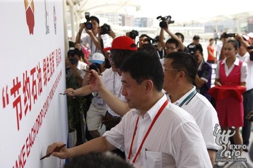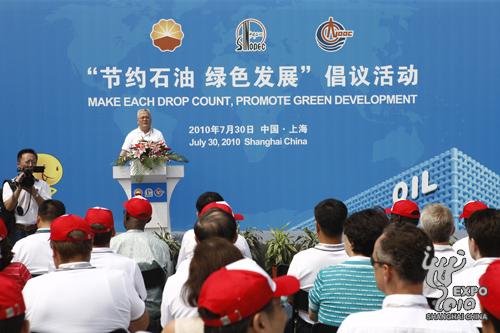上海世博局局长洪浩出席了石油馆特别活动日仪式,他在致辞中欢迎各方嘉宾来到上海世博会,并对中国石油、中国石化、中国海油三家石油公司举办倡议活动表示祝贺。