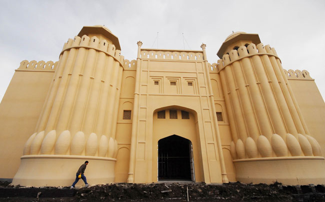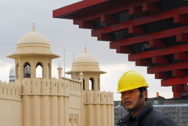 新华网上海12月15日电 12月14日拍摄的上海世博会巴基斯坦馆。日前,2010年上海世界博览会巴基斯坦馆封顶亮相,预计今年底完工。巴基斯坦馆位于上海世博园区浦东A片区,紧邻中国馆,展馆造型是等比例复制巴基斯坦著名的拉合尔古堡。 新华社签约摄影师 钮一新 摄