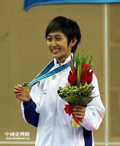 黄显咏站在领奖台上。(中国台湾网 钟宝华 摄)