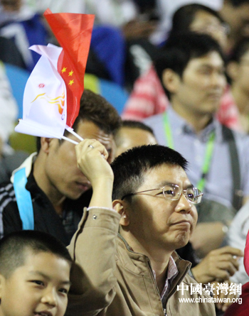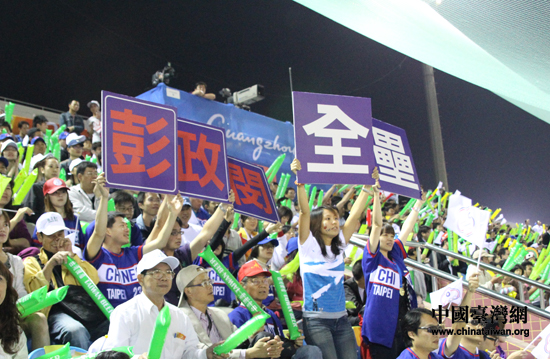 广州亚运棒球决赛吸引了大批观众到场观战。图为给中华台北队加油的大陆观众。(中国台湾网 沈鹏 摄)