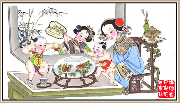 杨柳青(原名古柳口),是在天津正西三十里的一个市镇,地当大清河的下游,风景宜人,交通便利,全镇居民经营年画生意者约占五分之二以上,由明末崇祯年间开业至今,已有三百余年的悠久历史。极盛时期是在清光绪十年以前,每年要卖出二千万份以上,行销于华北和东北,远至西北的新疆各地。如齐建隆、戴连增、美利记等字号早年所印的年画,在内地即已成为珍品,在海外更难得一见。f