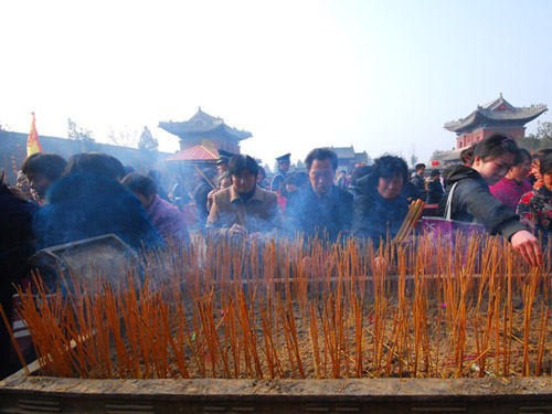 淮阳太昊陵庙会:太昊陵庙会被誉为中国最古老的庙会,也是中国最浪漫的庙会。每年从农历二月初二到三月初三,这期间每天有几万到十几万人拥向周口市淮阳太昊陵朝圣,最多时一天可达40万人,这就是淮阳太昊陵庙会,俗称“二月会”,也叫“人祖古会”。与其他庙会相比,太昊陵庙会习俗中有两个十分独特的地方:一是担经挑,也称担花篮。这是一种比较原始的祭祖娱神的舞蹈形式。第二个独特的习俗是庙会上随处可见的泥泥狗,这些玩具造型多样,形象夸张,神态各异,于古拙中见寓意。
