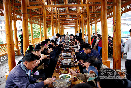 胶东在线网站17日黔南自治州雷山讯(特派记者崔景友)采访团一行到达西江千户苗寨是在16日夜里。在此之前,我们对苗寨没有什么印象。到达时,已是华灯初上。走在苗寨的街道上,放眼望去,大体能辨识出在大山的怀抱里,满山都是整整齐齐的灯光,星星点点。感觉非常的有气势。夜色已经笼罩住了一切,已看不出苗寨的轮廓,但越是看不清,越增加了一份神秘感,更引起了大家的向往。