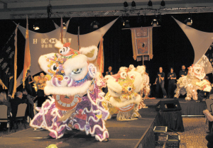 气势恢宏的醒狮表演为新年晚会拉开序幕。(美国《侨报》/李欣欣 摄)