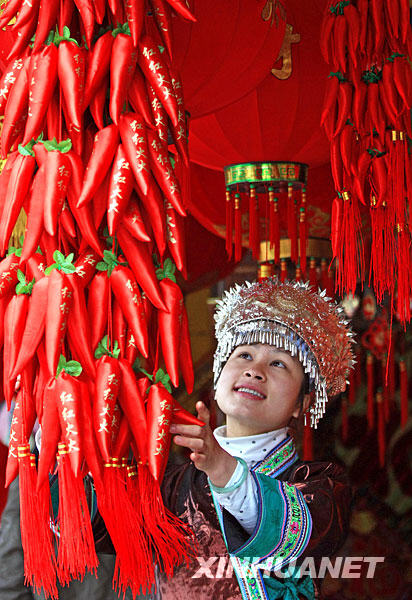 1月24日,在广西融水苗族自治县安太乡尧电苗寨,一名苗家姑娘选购春节饰品。 农历新年即将到来,融水苗族自治县各族群众纷纷来到集市上购买年货,苗乡街头到处洋溢着节日的喜庆气氛。新华社发